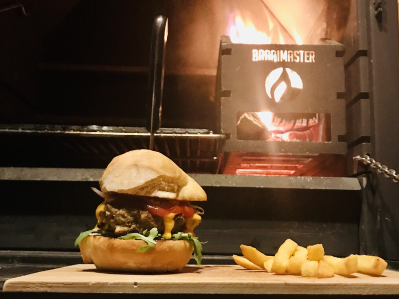 Snij de broodjes op en toast het brood op de braai. Leg de rucola erop daarna de burger, chedercheese, ui en augurk in die volgorde. Als laatste de mosterd en ketchup.