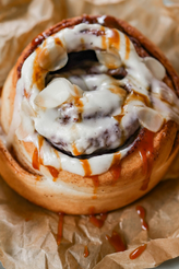 Rol een deel uit tot een sliert en smeer de binnenkant in met de vulling. Rol de sliert nu op tot een broodje en plaats in de muffin vorm. Herhaal tot alle delen klaar zijn.